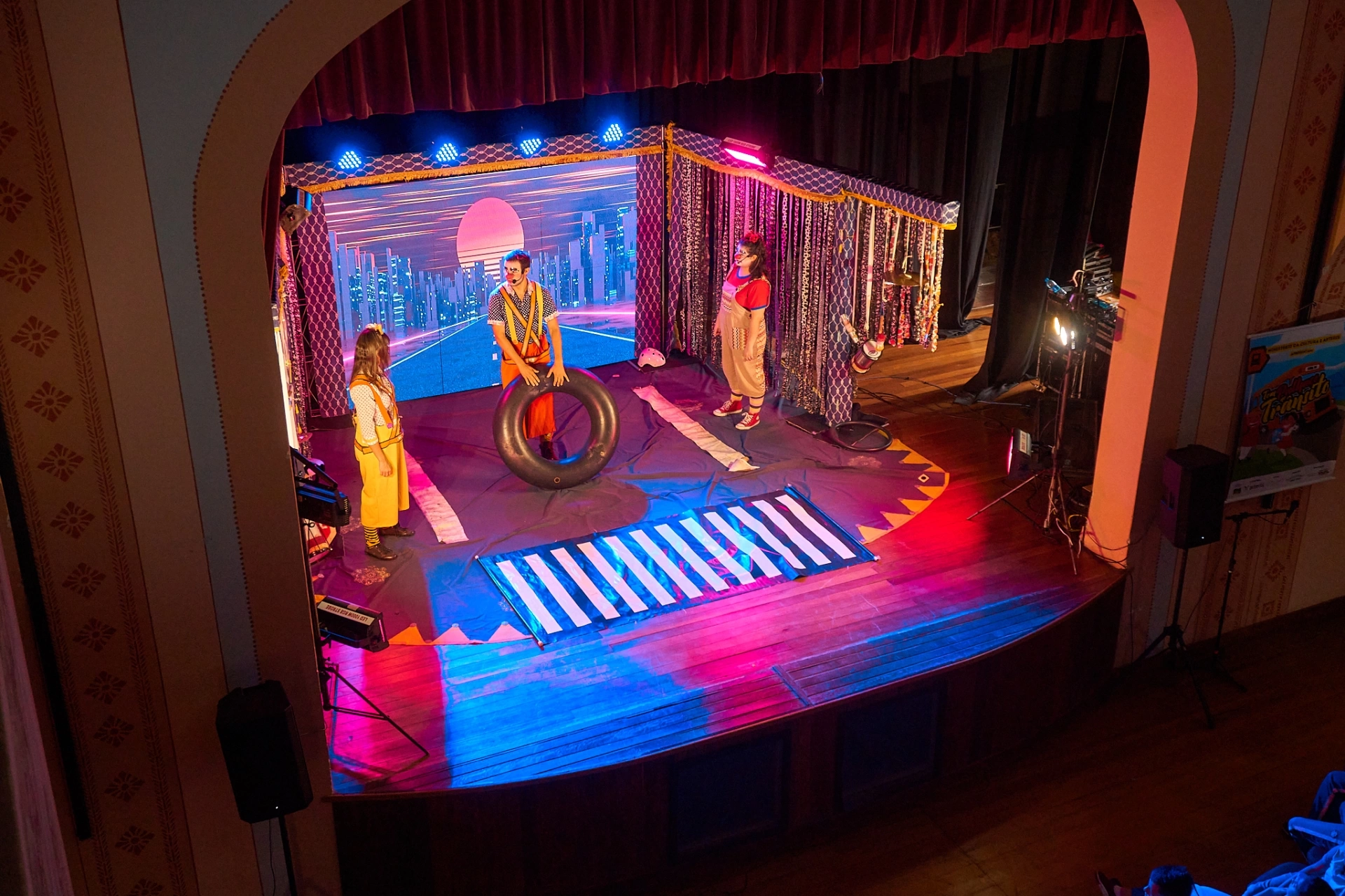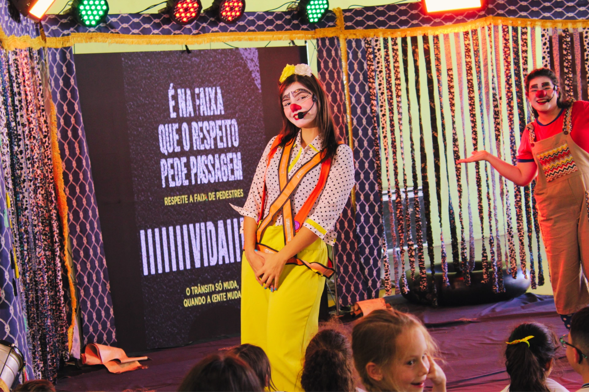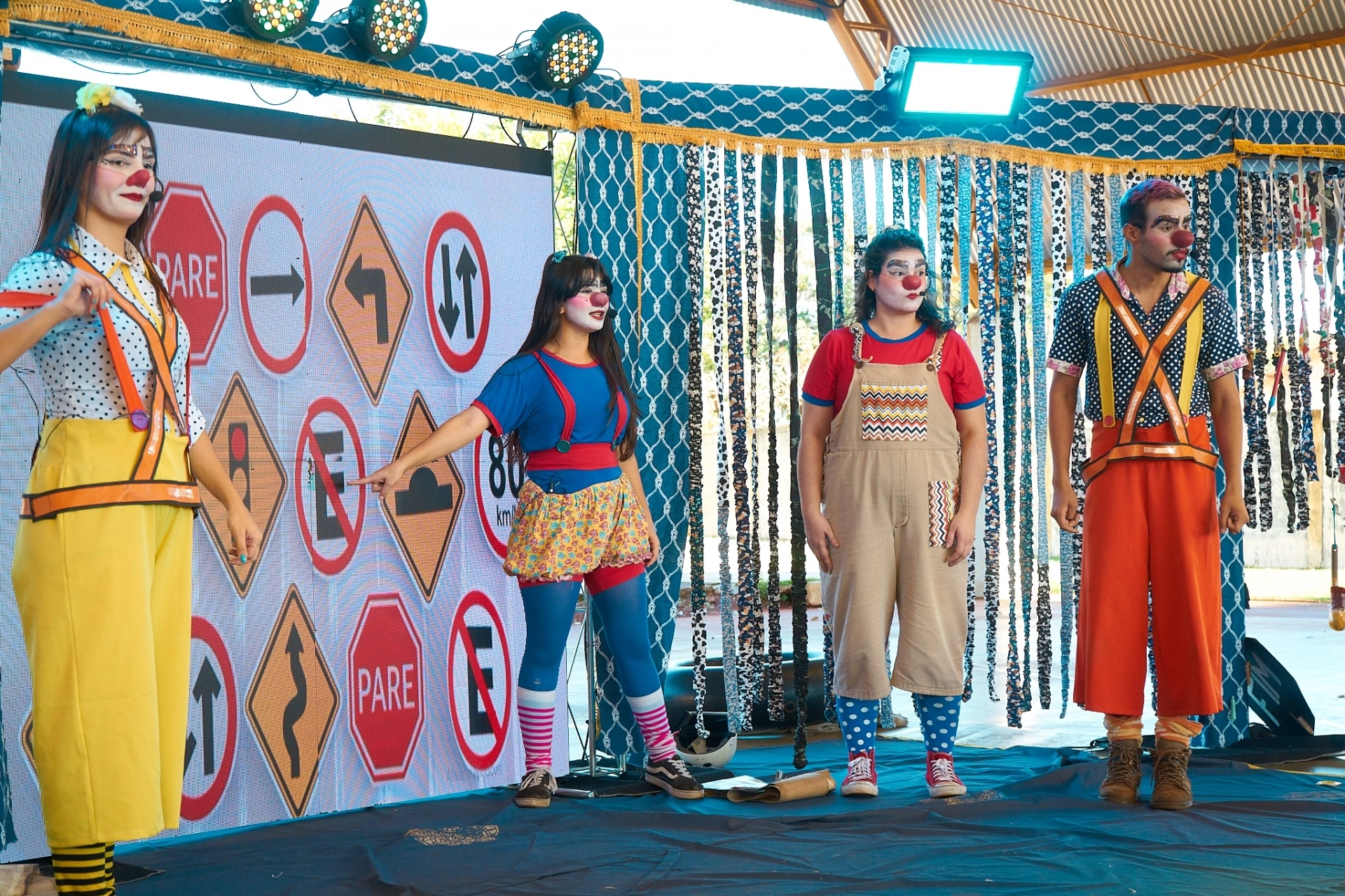 “Tem Palhaço no Trânsito” é um espetáculo educativo que, de forma divertida e acessível, apresenta as principais regras de trânsito que devem ser respeitadas por todos. A peça aborda desde atitudes simples, como atravessar na faixa de pedestres e utilizar a passarela, até cuidados indispensáveis, como respeitar semáforos e sinalizações, usar o cinto de segurança e evitar o uso do celular ao dirigir, entre outras práticas de prevenção.