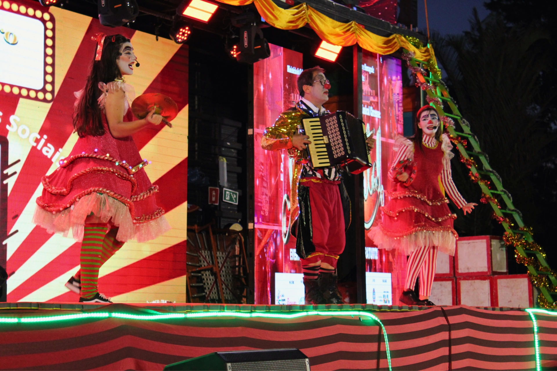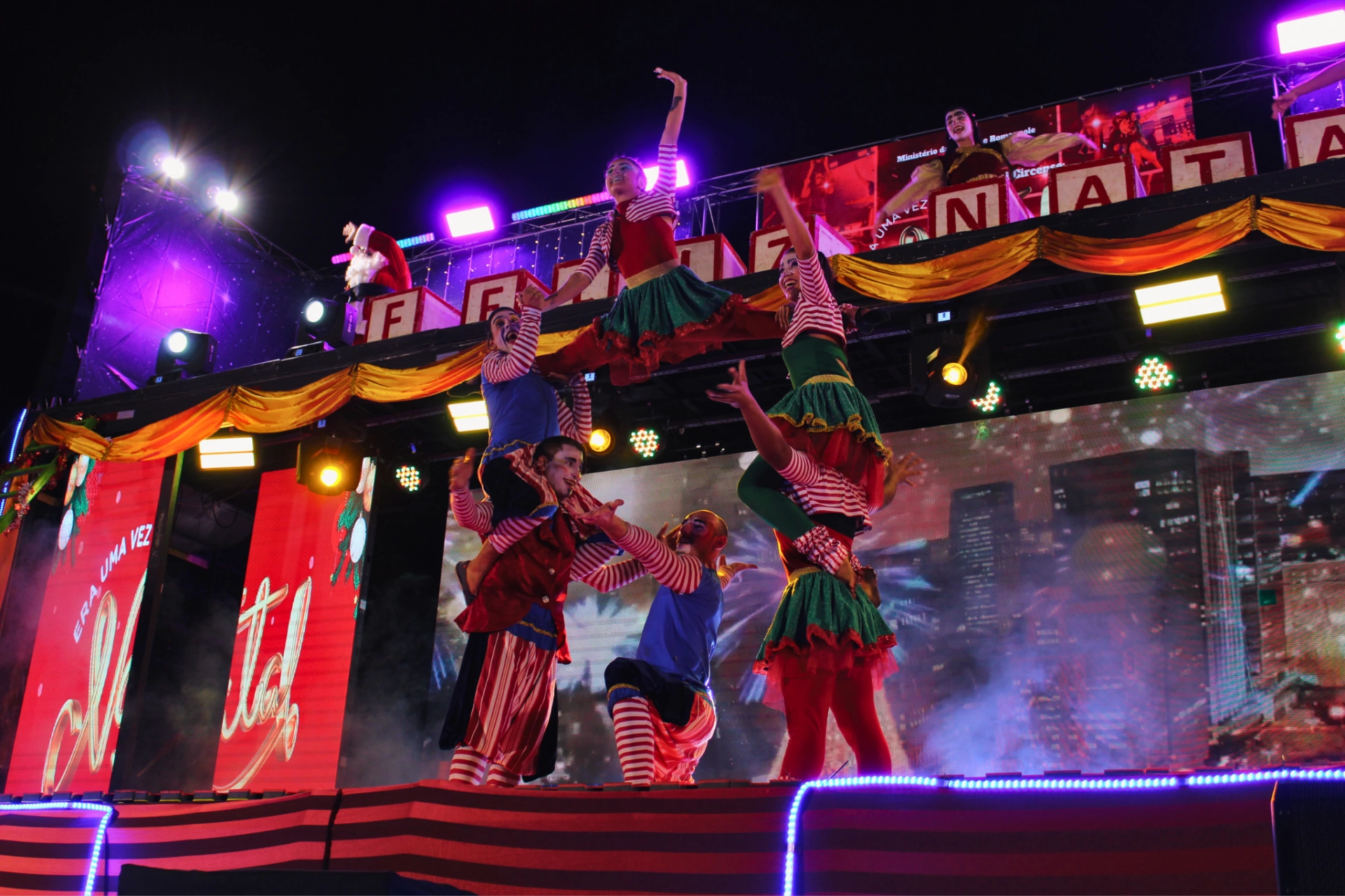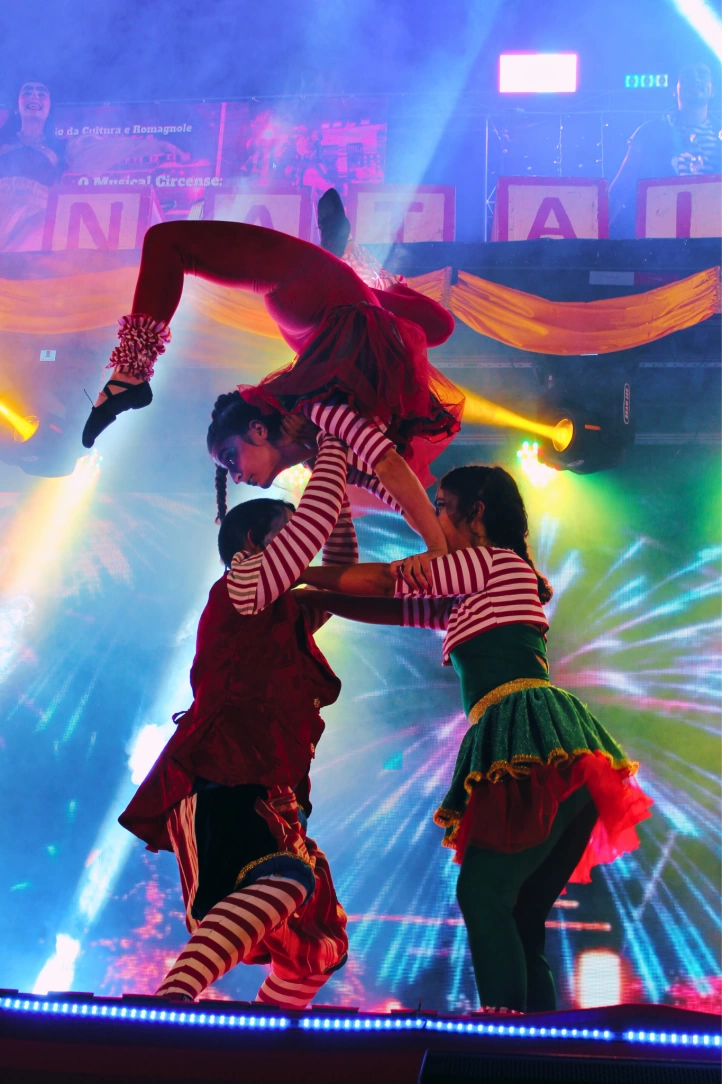 “A Magia do Natal” é um espetáculo itinerante que celebra a época mais encantadora do ano. A montagem reúne diferentes linguagens artísticas, como teatro, dança, música e circo, em uma apresentação lúdica, visualmente impactante e acessível a públicos de todas as idades.